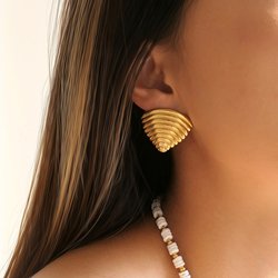 أقراط كلاسيكية جديدة من المشجعين بوهو ، أقراط صيفية من دازان مطلية بالذهب عيار 18 قيراط ، مجوهرات مسرح من الفولاذ المقاوم للصدأ غير مسببة للحساسية