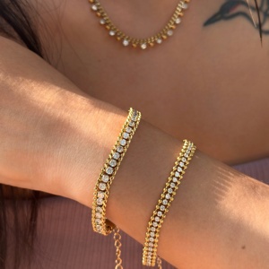 دازان جديدة من الفولاذ المقاوم للصدأ مطلي بالذهب عيار 18 قيراط جودة عالية فائقة اللمعان لطيف سلسلة تنس من الزركون 5A سوار أنيق للنساء