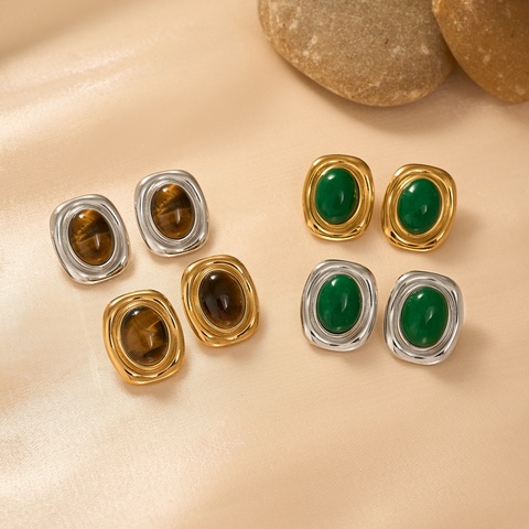 دازان جديد 18 قيراط مطلية بالذهب مضادة للحساسية من الفولاذ المقاوم للصدأ خمر بيضاوية اللون حجر طبيعي أقراط مرصعة بالمجوهرات الهندية الفاخرة