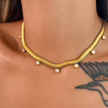 AW VINTAGE UNIQUE CLEAR PLANET ZIRCON Dangle HERRIINGBONE COLLAR Dazan 18K chapado en oro libre de deslustre JOYERÍA de acero inoxidable