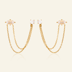 AW NUEVO BOHO DOBLE BORLA CADENA ESTILO TINY ZIRCON PENDIENTES Dazan HOT INS 18K Chapado en oro Hipoalergénico Joyería de acero inoxidable