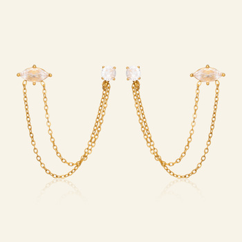 AW NUEVO VINTAGE DOBLE BORLA CADENA ESTILO TENIS ZIRCON PENDIENTES Dazan HOT 18K Chapado en oro Hipoalergénico Joyería de acero inoxidable