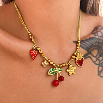 NUEVO CEREZO FRESA COLGANTE CUENTAS MEZCLA DE DISEÑO COLLAR Dazan 2025 AW 18K Chapado en oro Joyas de acero inoxidable sin deslustre