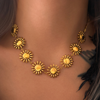 NUEVO BOHO NORDIC MEDIEVAL CORTE ESTILO SUN TOTEM COLLAR COLGANTE Dazan HOT 18K Chapado en oro de acero inoxidable BIKINI Lady Jewelry