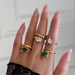 NUEVO BOHO ARTIST WAVE SNAKE DROP GREEN ZIRCON RING 2025 Dazan Summer 18K PVD Chapado en oro Acero inoxidable SPRING RUNWAY JEWELRY