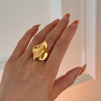2024 Dazan güz yeni sıcak Ins Trendy 18k Pvd altın kaplama paslanmaz çelik Vintage abartma düzensiz büyük kırışıklık yüzük bayanlar için