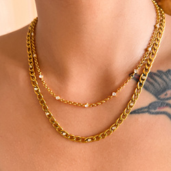2023 Dazan Outono Inverno 18k Banhado A Ouro Tarnish Livre Aço Inoxidável Eden Triple Layer Bouquet Gargantilha Colar Para Mulheres Homens