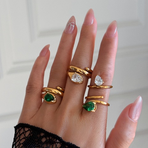 NOVA BOHO ARTIST WAVE SNAKE DROP VERDE ZIRCON RING 2025 Dazan Verão 18k PVD Banhado A Ouro Aço Inoxidável MOLA RUNWAY JÓIAS