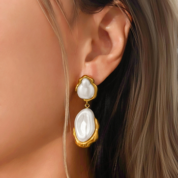 AW yeni BOHO rokoko heykel hacmi G klip inci küpeler Dazan sıcak INS 18k altın kaplama hipoalerjenik paslanmaz çelik takı