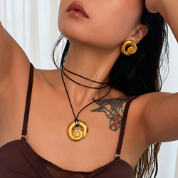 Yeni VINTAGE girdap kolye siyah halat zincir kolye küpe seti Dazan 2025 18k altın kaplama paslanmaz çelik bayan katmanlı takı